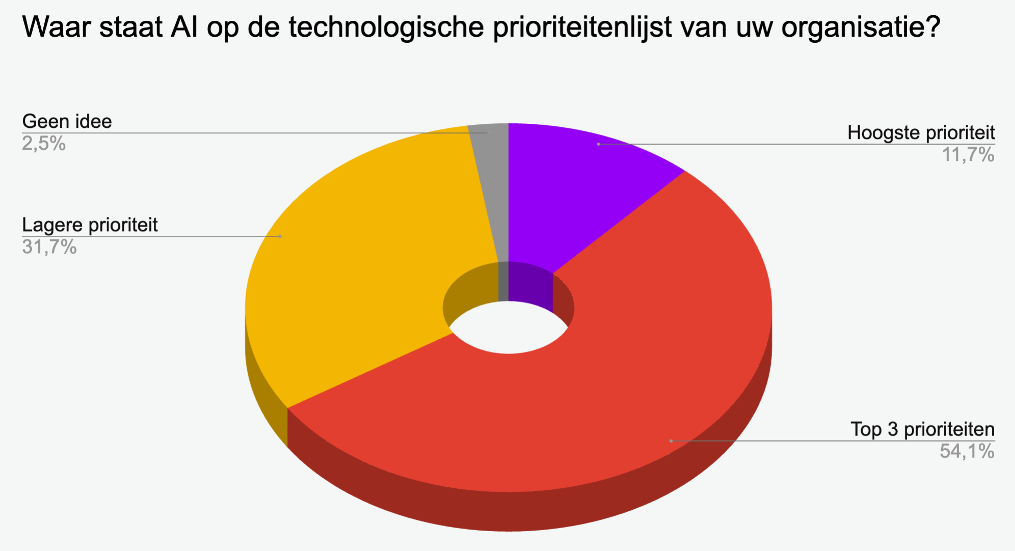 Uncertainty about AI’s strategic position occurs almost exclusively in this group. This points to a classic divide: AI is alive in strategic discussions at the top, but loses weight once concrete decisions or initiatives are taken further down in the organization.