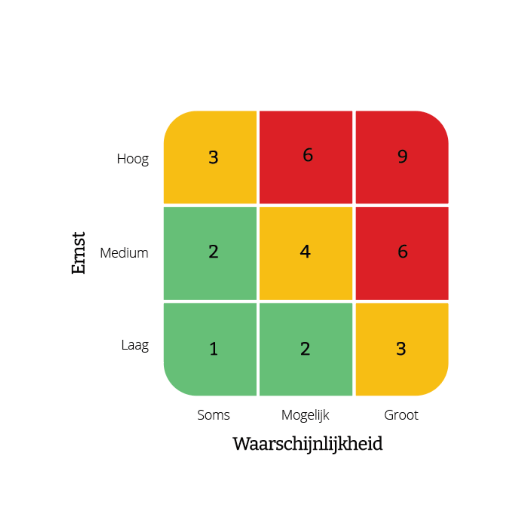 Na het interview bezorgden de organisaties alle relevante documentatie over het aankoopproces. TriFinance synthesiseerde de bevindingen uit het interview, de survey, de spendanalyse en de documentatie. We benoemden sterktes en zwaktes en schaalden risico’s in via een risicomatrix (impact × waarschijnlijkheid). Elk werkpunt kreeg een prioriteit, met passende beheersmaatregelen en concrete verbeteracties.