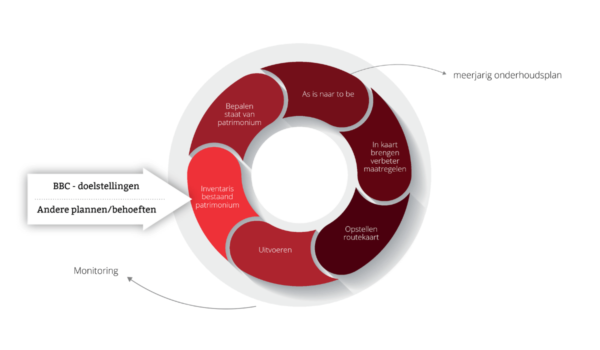 Dankzij deze modulaire opbouw kunnen besturen kiezen: focussen op één specifieke stap of de volledige cyclus toepassen op hun patrimonium. Daarbij wordt altijd voortgebouwd op bestaande informatie binnen het bestuur.