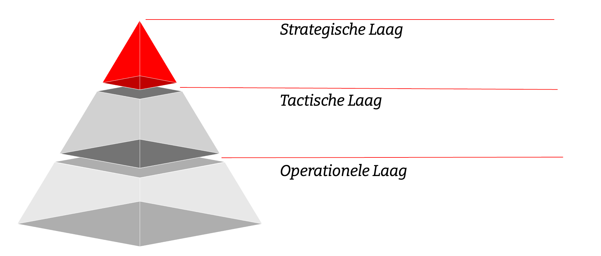 Het visuele dashboard introduceerde een drielaagse informatiearchitectuur, vormgegeven als een piramide. De strategische "punt van de pyramide" biedt directie en management een helikopterview. De tactische laag geeft ruimte voor diepgaande analyses. De operationele laag levert de dagelijkse details die teams nodig hebben voor hun werk. Voor elke KPI werd in kaart gebracht welke data nodig was en waar deze zich bevond. Deze data-inventarisatie vormde het technische fundament voor de Power BI-ontwikkelaars en minimaliseert het risico op verrassingen tijdens de bouwfase.